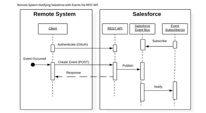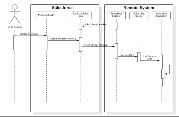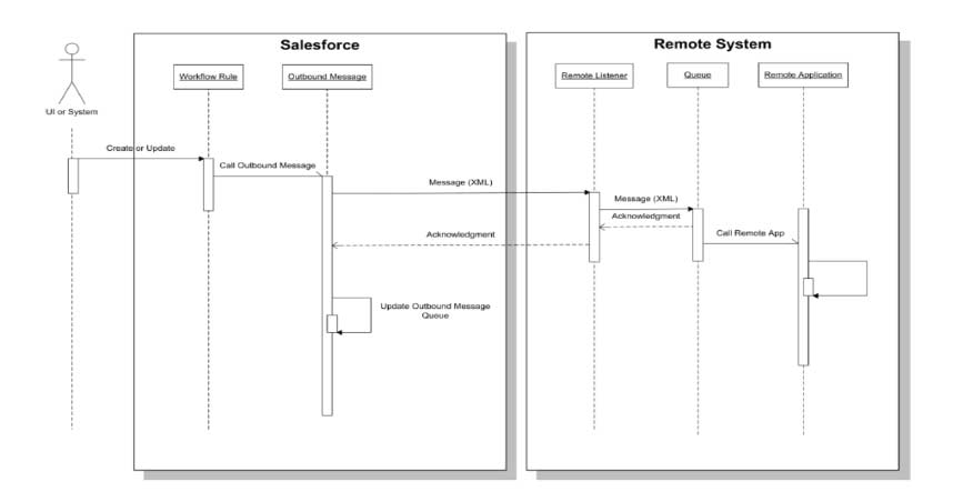 - Messages are transmitted asynchronously and without using the Salesforce user interface.